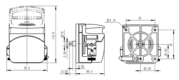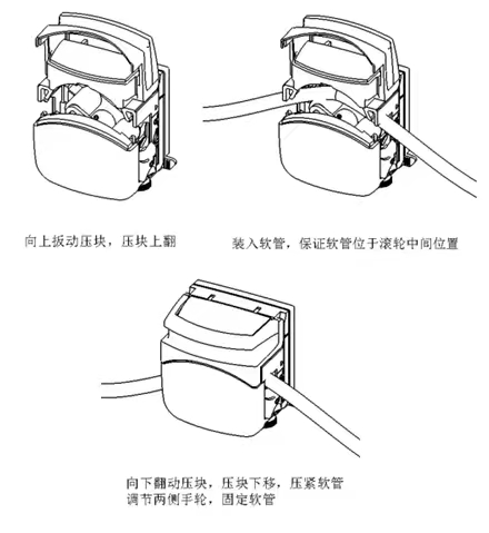 FG15蠕动泵泵头才有翻盖结构设计,快速奉还软管,具有自动适就卡管装置,适用于多种规格软管,性能类似于YZ1515